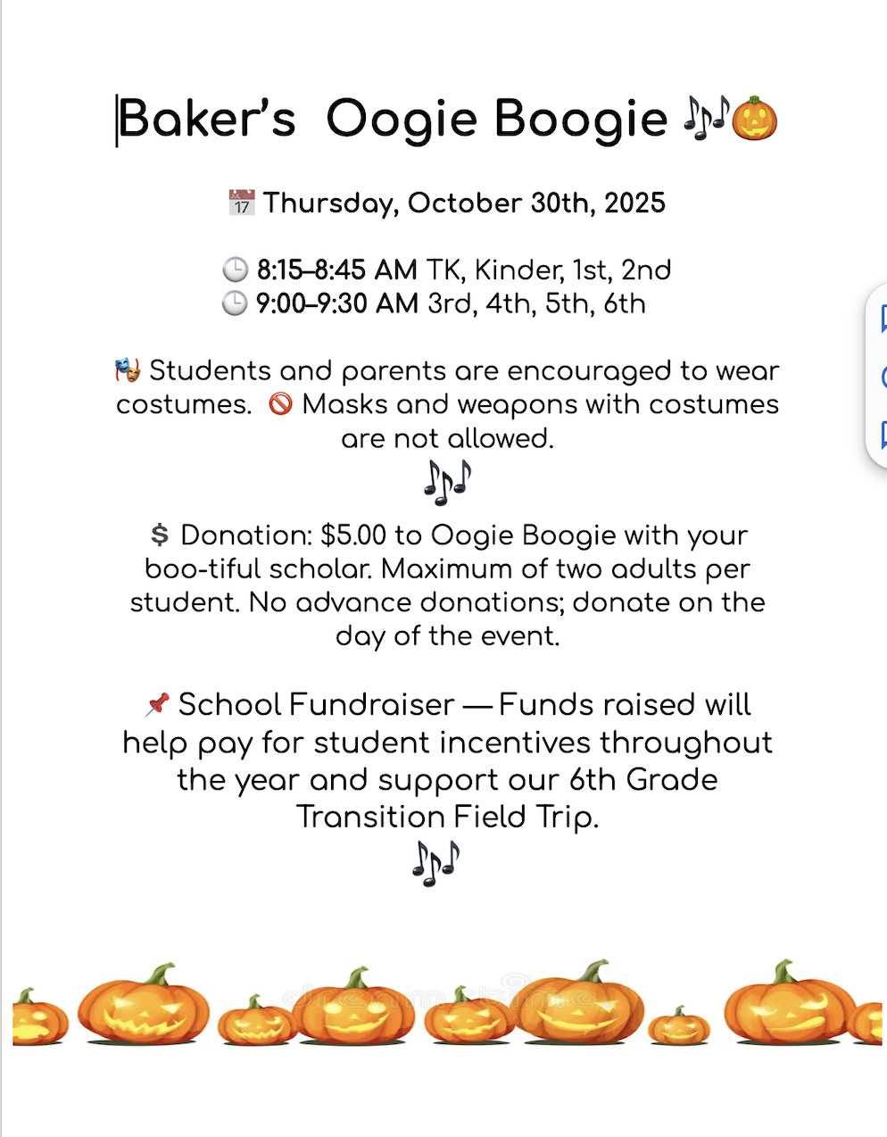 Good afternoon families, Dont forget to join us tomorrow for our Oogie