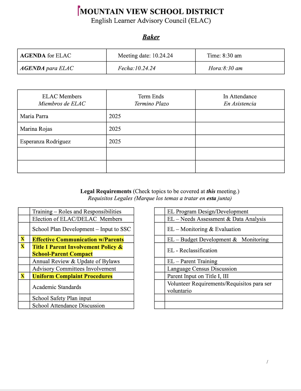 Mañana, Jueves 24 de Octubre, tendremos nuestras reuniones mensuales de BPAC y ELAC. Tendremos dos horarios de reunión, 8:30 am y 5pm, las dos en persona . Por favor únase a nosotros ya que vamos a pasar por EL TÍTULO 1 y es extremadamente importante para nuestra escuela y estudiantes. Para aquellos padres que se presenten, ganarán un pase para que su estudiante reciba DOBLE RECREO y otra sorpresa. No podemos esperar a verlos a todos.