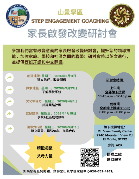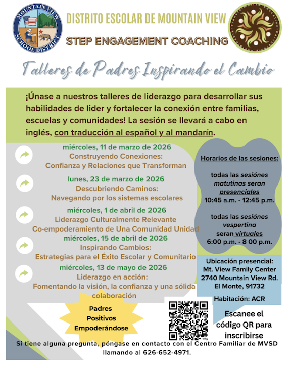 Mountain View School District is excited to invite YOU to be part of our Parent Inspiring Change Workshops – STEP Engagement Coaching Series!